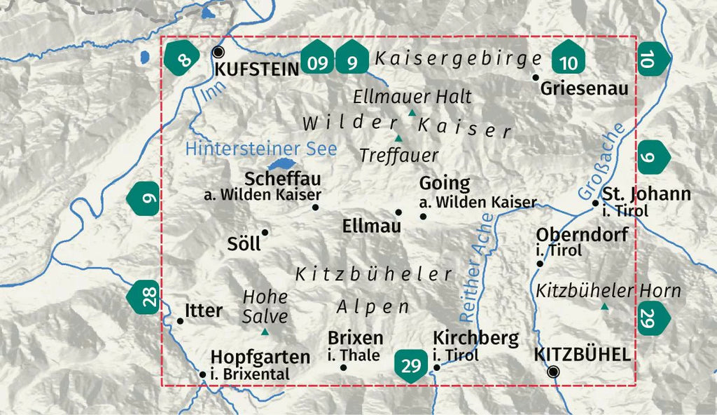Wanderkarte Wilder Kaiser - Ellmau - Going - Scheffau - Söll: