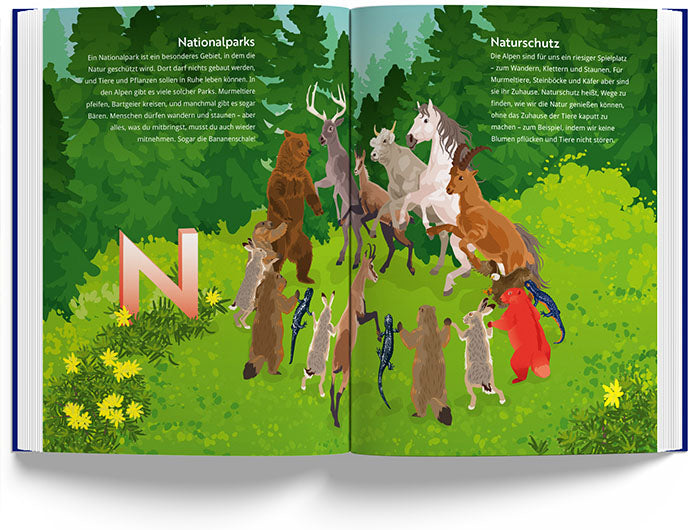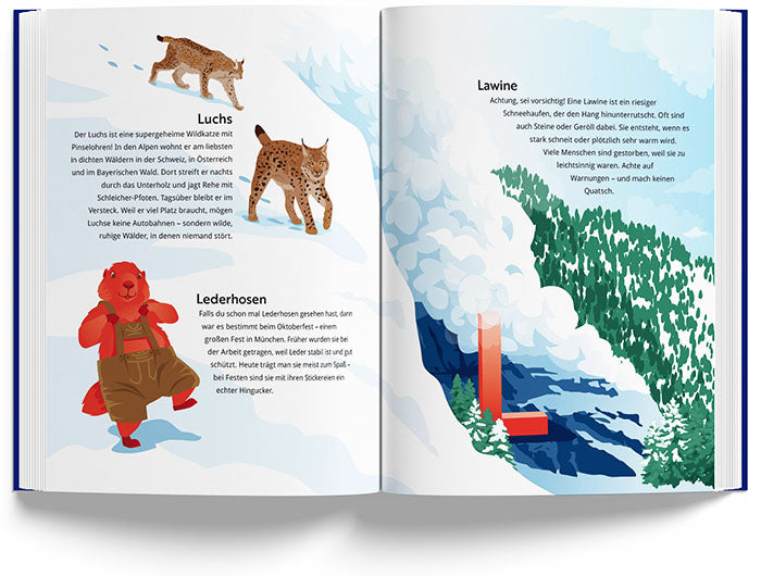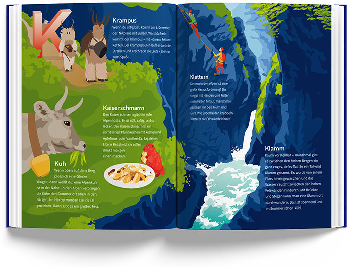 Von A wie Alphorn bis Z wie Zugspitze – das Alpen ABC lädt Kinder ein, die Welt der Alpen zu entdecken. Auf über 60 liebevoll gestalteten Seiten erfahren sie Spannendes über Berge, Tiere, Naturphänomene, Fabelwesen und vieles mehr – verständlich erklärt und farbenfroh illustriert.