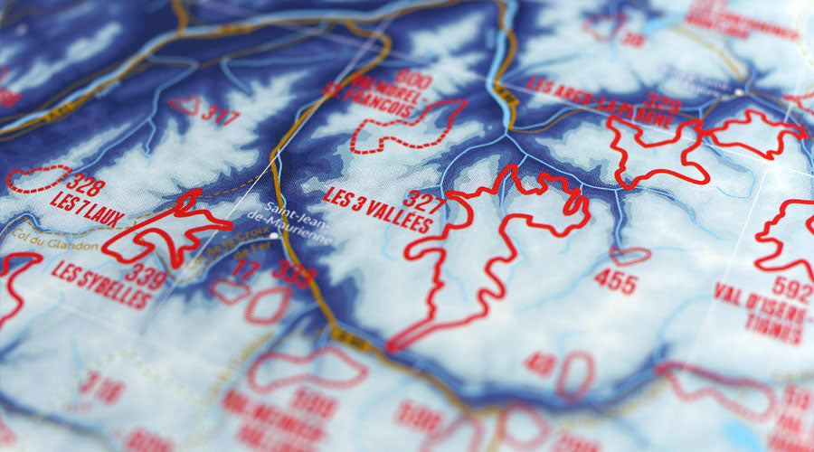Grafisch wird die Ausbreitung der Skigebiete begrenzt durch die äußeren Lifte oder Pisten dargestellt.