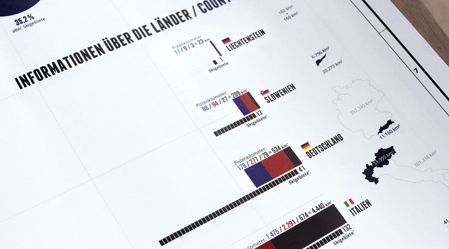Auf dieser Karte bilden wir alle Skigebiete der Alpen mit einer Pistenlänge von mindestens fünf Kilometern ab.