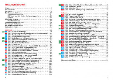 60 Wanderkärtchen im Maßstab 1:50.000 und 1:75.000, 60 Höhenprofile, zwei Übersichtskarten im Maßstab 1:500.000 und 1:700.000