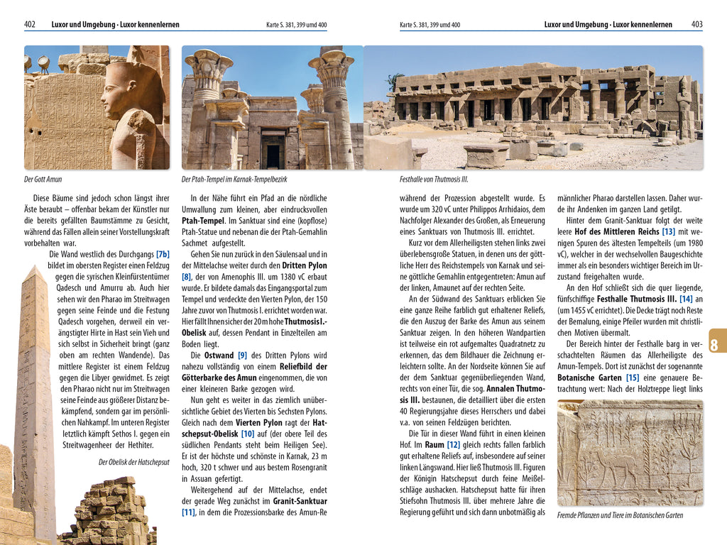 - Umfassende Beschreibungen aller wichtigen Regionen: Von Kairo und Gizeh über Mittel- und Oberägypten bis Abu Simbel, den Suez-Kanal und die Küstenstädte am Roten Meer wie Hurghada und Marsa Alam