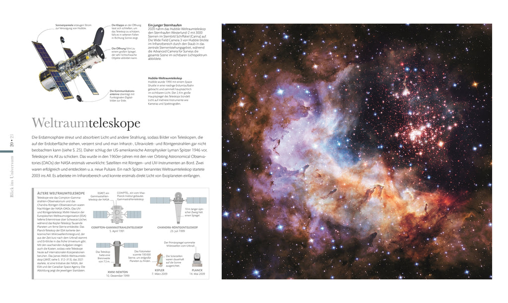 • Grenzenlos staunen: vom Asteroidengürtel bis zum Rand der Milchstraße, von der ISS bis zu Raumsonden, die auf Kometen landen, vom Urknall bis zum Ende des Universums