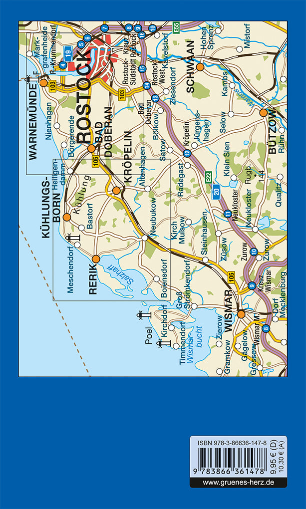 Der Reiseführer beschreibt Natur und Kultur der Region zwischen Warnemünde und Rerik. Der Reiseführer ist eine Hilfe und Unterstützung, die allgemein bekannten, aber auch die versteckten und mitunter erst auf dem zweiten Blick zu entdeckenden Schönheiten des Landes genießen zu können. Die Beschreibung beginnt in Warne-münde, hat Ausflugstipps für Rostock parat, folgt der Küste entlang bis Rerik, hier gibt es wieder Ausflugstipps für Wismar und die Insel Poel, dann geht's die B 105 entlang mit Neubukow, Kröpelin und Bad Doberan. Auf 120 Seiten findet der Tourist praktische Hinweise zur Gestaltung seines Urlaubs aber auch Hintergrundwissen, Sagen und Anekdoten. Durch die übersichtliche Gestaltung und Bebilderung mit Farbfotos findet sich der Nutzer gut zurecht. Ein Informationsanhang gibt Auskunft über Touristinformationen und Kurverwaltungen, Museen und andere Kultureinrichtungen selbstverständlich mit Angabe der Telefonnummern und Internetadressen. Der Miniatlas hilft beim Planen, Orientieren und Auffinden der Ziele.