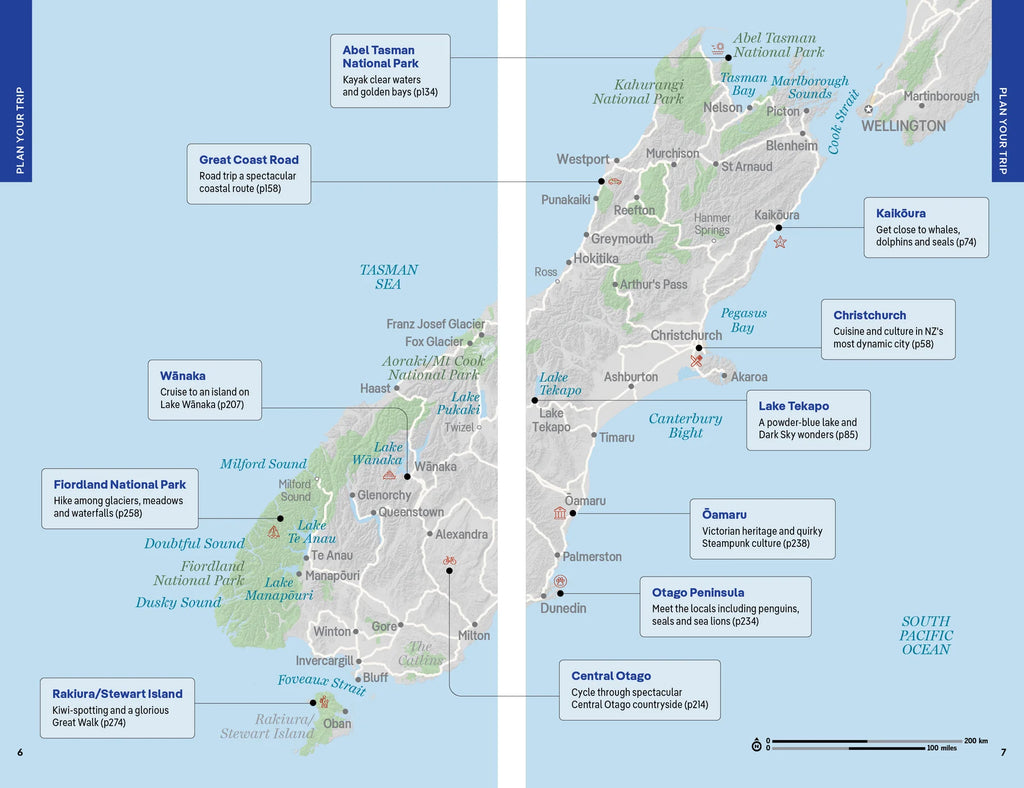 - Covers: Christchurch & Canterbury; Marlborough & Nelson; The West Coast; Queenstown, Wānaka & Central Otago; Dunedin, Waitaki & the Catlins; Fiordland & Southland