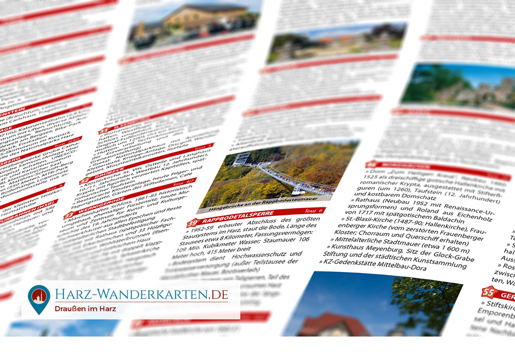 Auf der Rückseite bietet die Freizeitkarte einen Überblick der Touren sowie einen kleinen Reiseführer mit Beschreibungen zu den Orten und Ausflugszielen.