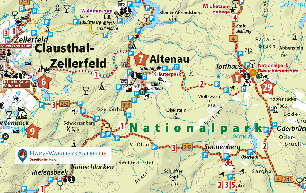 Wohin im Harz? Diese Frage beantwortet die Luchskarte Harz im praktischen Hosentaschenformat. So führt sie im Maßstab 1:125.000 zu sehenswerten Ausflugszielen und abwechslungsreichen Freizeitstätten der beliebten Ferienregion – vom Märchenschloss über die Hängebrücke bis hin zur Minigolfanlage.