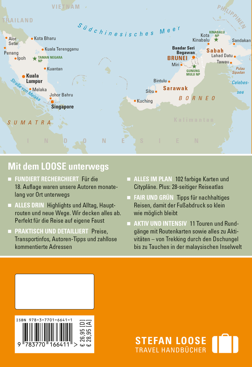 Asiatische Kultur und Tradition, Städte voller Sehenswürdigkeiten und Nachtleben, grüne Teeplantagen und seltene Wildtiere in Nationalparks, abwechslungsreiche Küche, endlose Strände und Inseln mit Korallenriffen - Malaysia, Brunei und Singapore sind Ziele für Reiseabenteurer, die abseits des Massentourismus in fremde Kulturen eintauchen möchten.Mit den Informationen der Loose-Experten wird die Reiseplanung zum Kinderspiel. Hier findest du alles, was du brauchst:Ausgewählte kommentierte Adressen für Unterkünfte, Restaurants, Shopping, Nachtleben und Ausgehen.Über 116 detaillierte Karten für eine einfache Navigation.Reiserouten, die auch mit kleinem Budget umsetzbar sind.Extra hervorgehoben: Faire und grüne Angebote, Adressen mit besonders tollem Preis-Leistungs-Verhältnis und ausgesuchte Autoren-TippsAlles für Aktive: Trekking, Touren, Naturbeobachtung, Tauchen und BootstourenOb Abenteuer- oder Shoppingtour, Strandtrip oder Kulturreise: Der Stefan Loose Reiseführer Malaysia, Brunei und Singapore ist der ideale Begleiter für alle, die eine unvergessliche Reise in eine der kontrastreichsten Regionen der Welt unternehmen wollen.