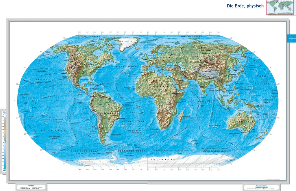 'Meyers Neuer Weltatlas' zeichnet ein präzises und aktuelles Bild unserer Erde: Optisch wie inhaltlich auf dem neuesten Stand der Kartografie, ist dieser moderne Premium-Atlas ein unverzichtbares Nachschlagewerk für eine virtuelle Reise um die Welt. Über 150 detaillierte Reliefkarten in Maßstäben von 1:1 Mio. bis 1:6 Mio. vermitteln ein nahezu realistisches Abbild der Formen und Strukturen der Erde. Ein vorgelagerter thematischer Teil beschäftigt sich mit der Erde als Teil des Universums und als Lebensraum. Ein weiterer Abschnitt zeigt eindrückliche Satellitenaufnahmen. Das Länderlexikon liefert aktuelle Daten und Fakten zu allen Staaten unserer Erde. Mit Auflistung und Beschreibung aller aktuellen UNESCO-Welterbestätten und ergänzten Nationalparks in den europäischen Karten.