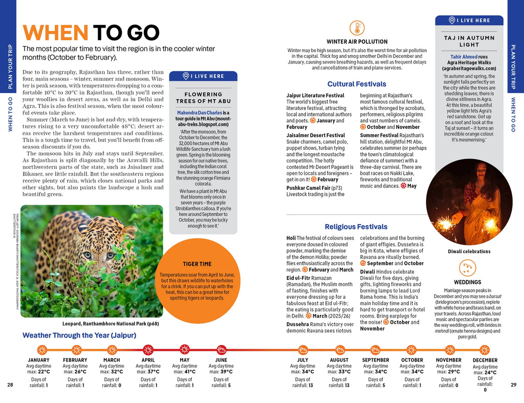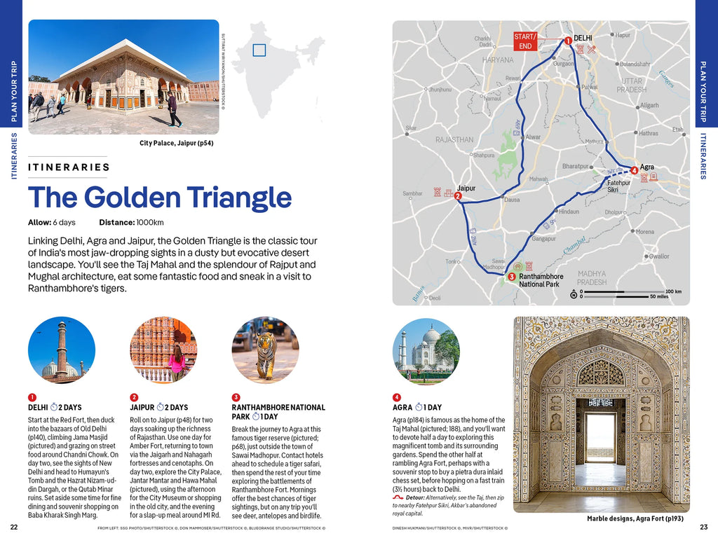 - Special features on exploring Delhi's historic sites, marvelling at the Taj Mahal, and discovering Rajasthan's coloured cities