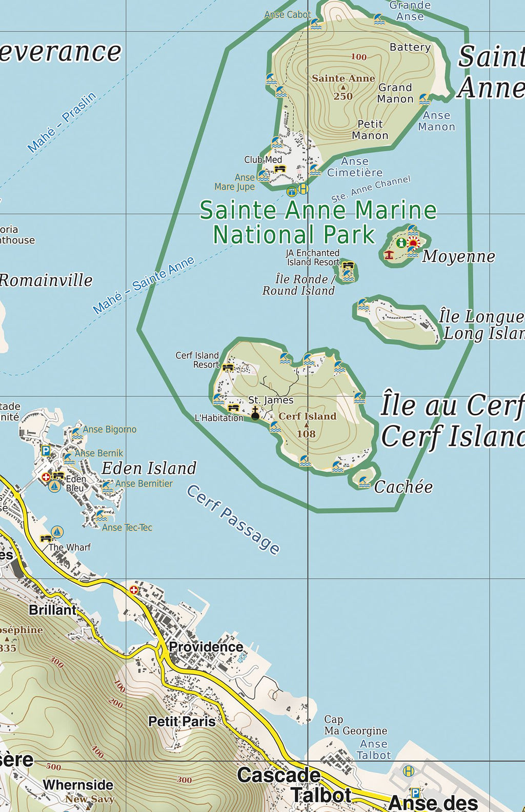 Entdecken Sie die Schönheit der Seychellen mit der detaillierten topografischen Karte im Maßstab 1:50.000 von Edition PhoneMaps. Diese hochwertige Karte bietet nicht nur eine umfassende Abdeckung der einzelnen Inseln der Seychellen, sondern enthält auch einen Stadtplan von Victoria.