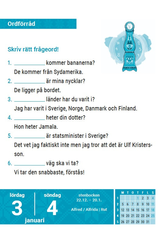 – Übersetzungen, Lösungen und Vokabelhilfen auf den Rückseiten der Kalenderblätter